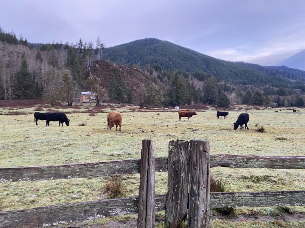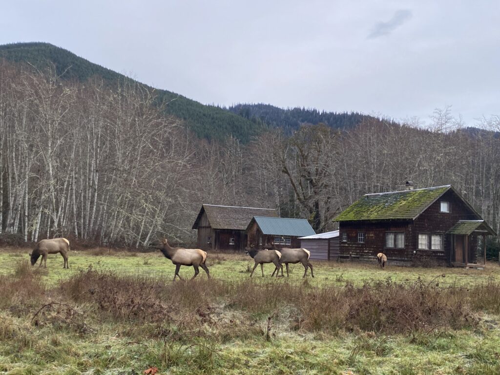 We started the morning with lots of animal encounters as we headed towards the Hoh Rainforest. Cows (left) and elk (right).