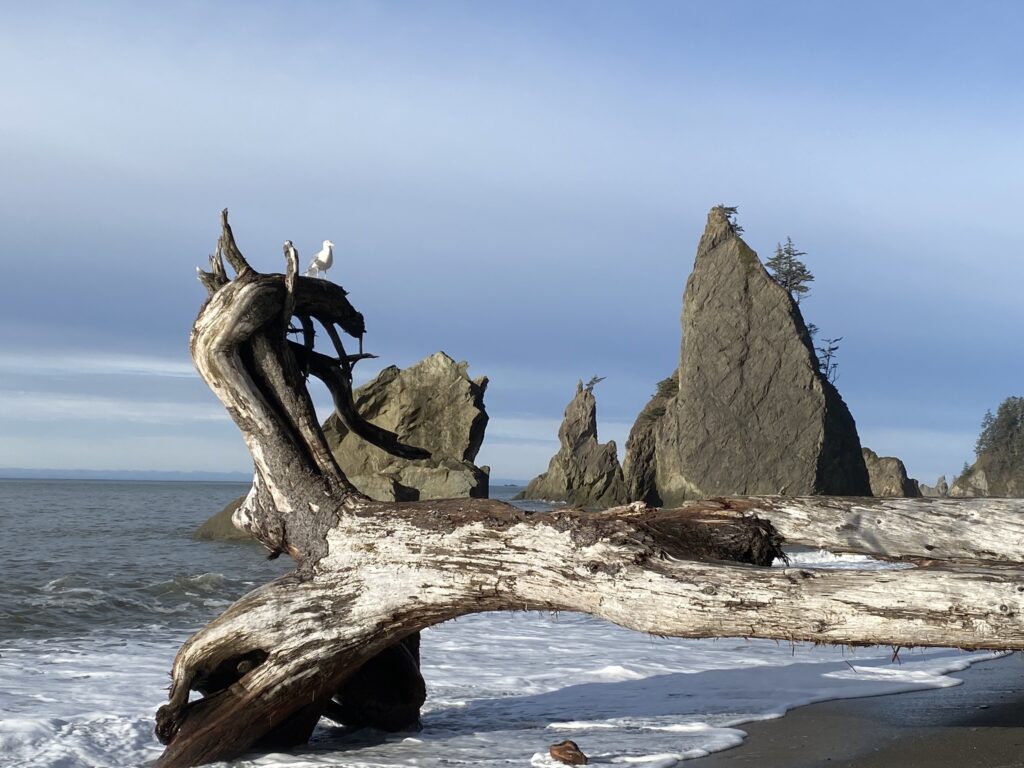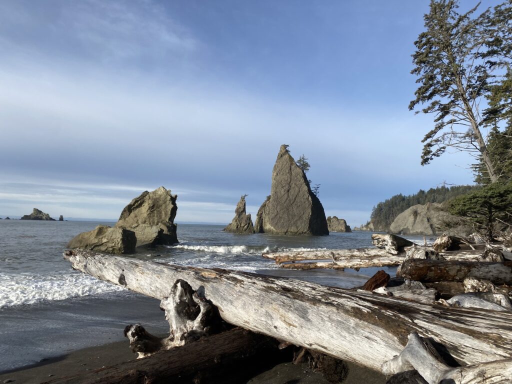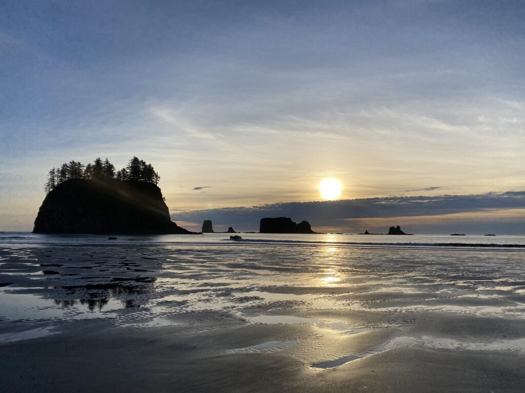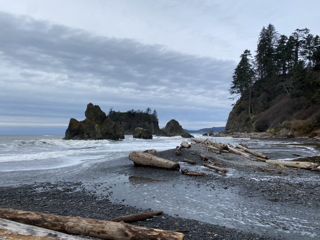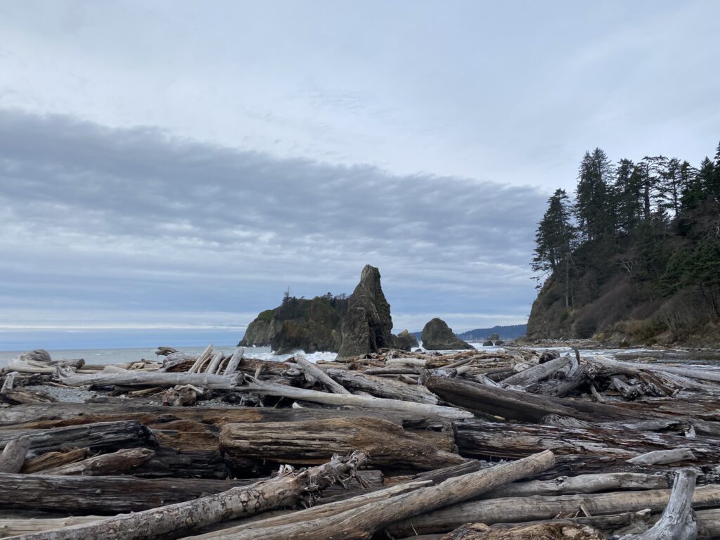 We went to Rialto Beach and walked along the Pacific Northwest National Scenic Trail until we reached the famous Hole-in-the-Wall rock! It was high tide, so we weren’t able to get super close, but the views were excellent nonetheless!