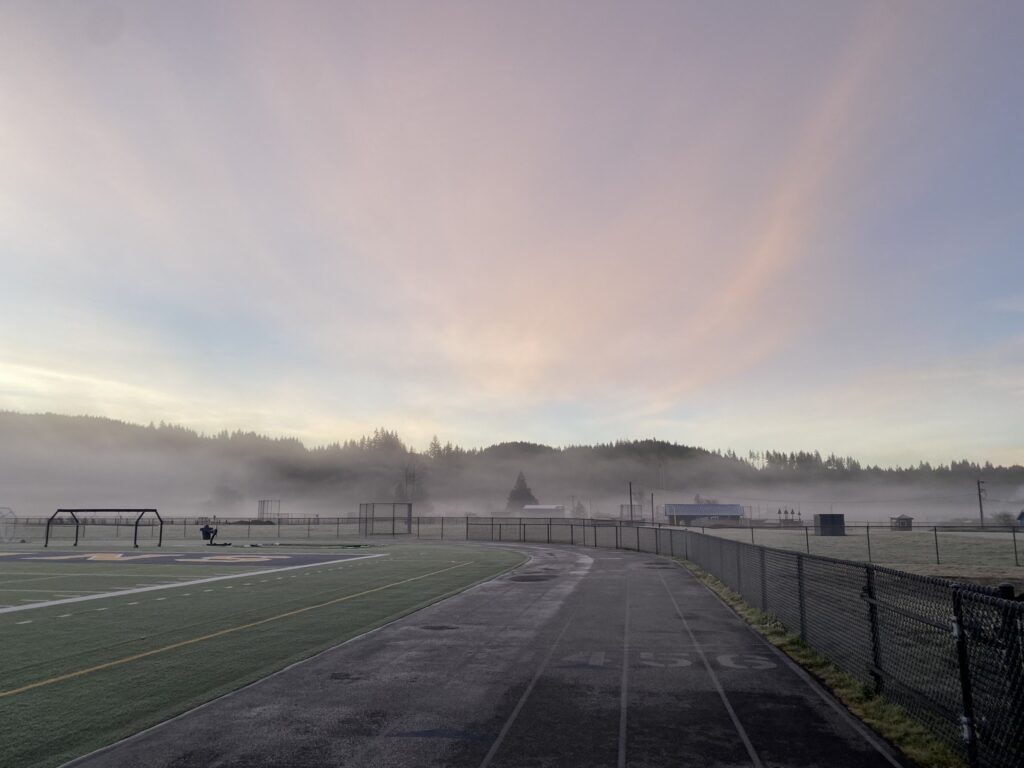 Early wakeup for a track workout at Forks High School. I think I saw Bella and Edward in the distance…but who can say…maybe I was just delusional from workout exhaustion…or maybe not…