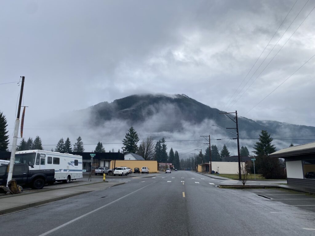 We got up very early and drove to Darrington for breakfast at Moe’s Coffee Shop. Another excellent place to drink hot chocolate. This area was BEAUTIFUL! We had distant views of Mt. Baker-Snoqualmie National Forest and the North Cascades.